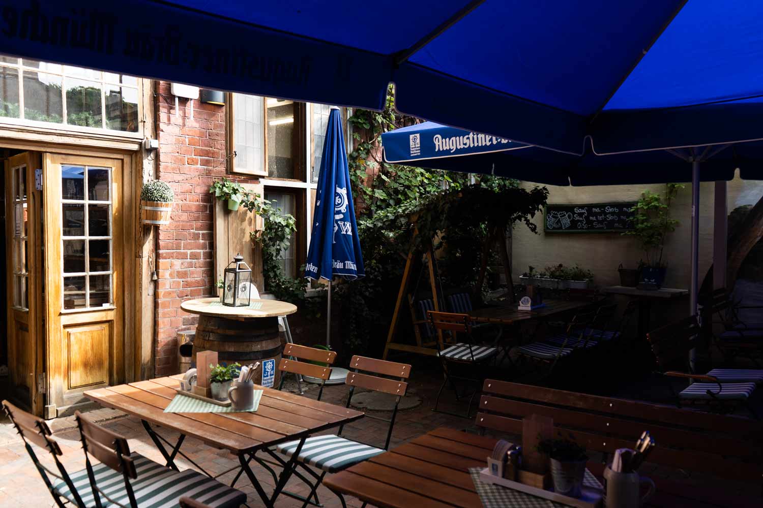 Hier warten viele lauschige Plätze im Innen- und Außenbereich auf Sie … zum Platznehmen und Entspannen nach einem erlebnisreichen Ausflug durch Potsdams einzigartige historische Innenstadt. Bei erfrischendem Augustiner Bier vom Fass und zahlreichen bayrischen Snacks können Sie zum Ausklang des Tages das schöne ruhige Flair in unserem Viertel beobachten und genießen.